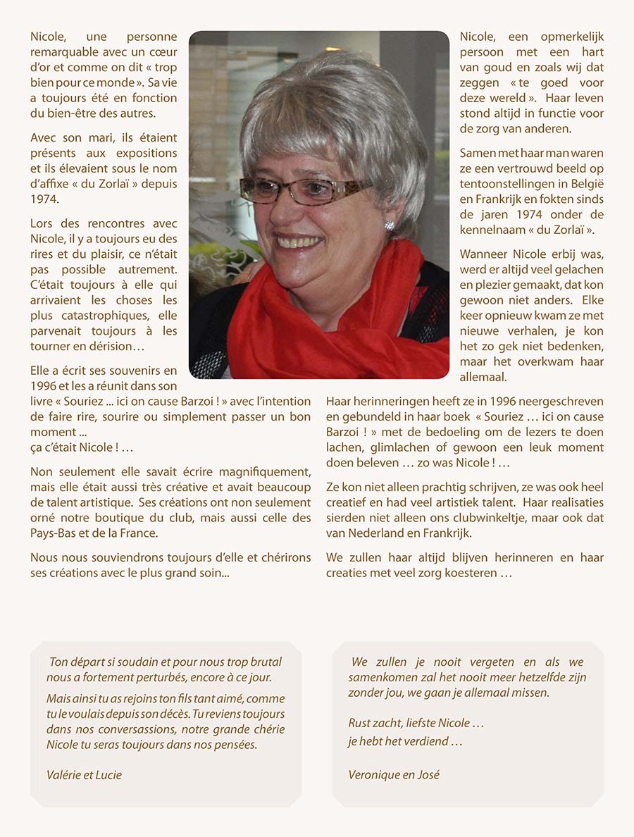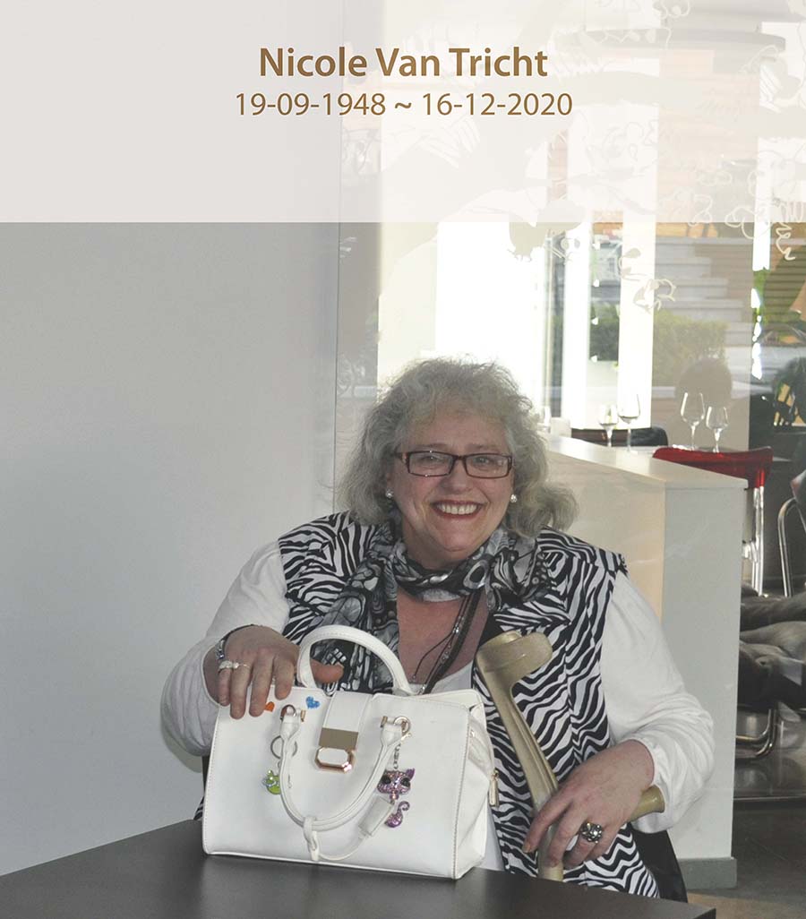| Op 16 december 2020 is Nicole Van Tricht van ons heengegaan, heel plots en totaal onverwacht door verwikkelingen na een ingreep. Nicole was van bij het begin nauw betrokken bij onze vereniging en tot voor een paar jaar er ook altijd bij. Velen onder u zullen haar herinneren als het vertrouwde gezicht samen met haar man Jean De Mulder in het clubwinkeltje. |